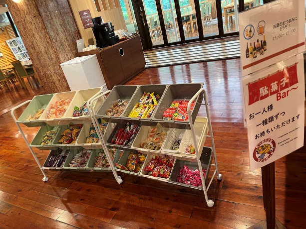 そして子連れに嬉しいのが、15~17時には「お菓子・おつまみバー」もオープン♪