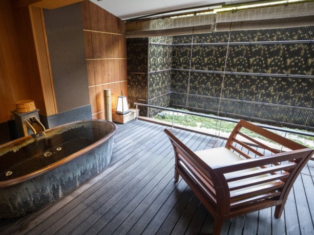 - 和室 + 露天風呂付き客室など、広々空間で家族でゆったり過ごせる設計。